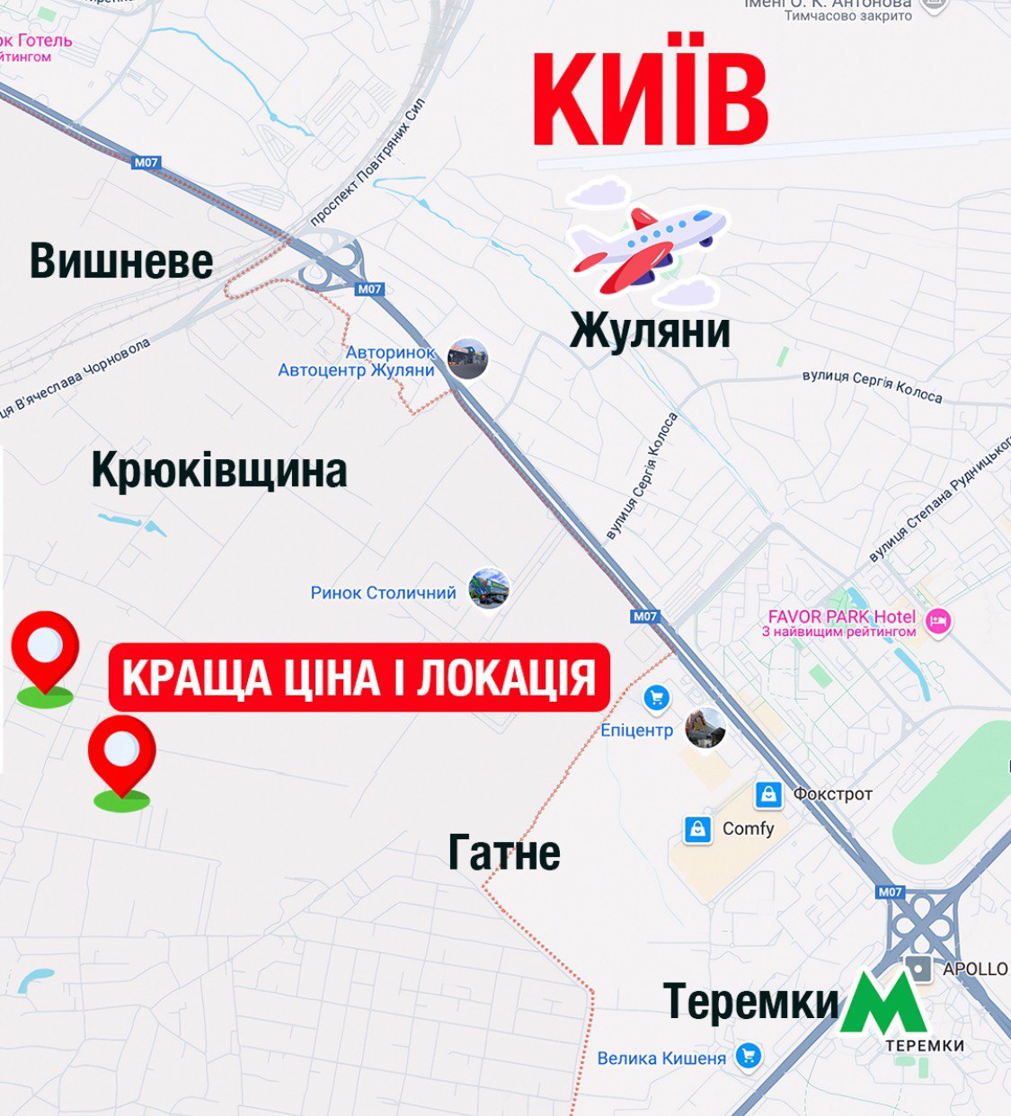 На всіх ділянках зроблені якісні дороги для початку будівництва. Центральні комунікації: вода та каналізація. Газ + електрика від ДТЕК. Асфальтований під’їзд